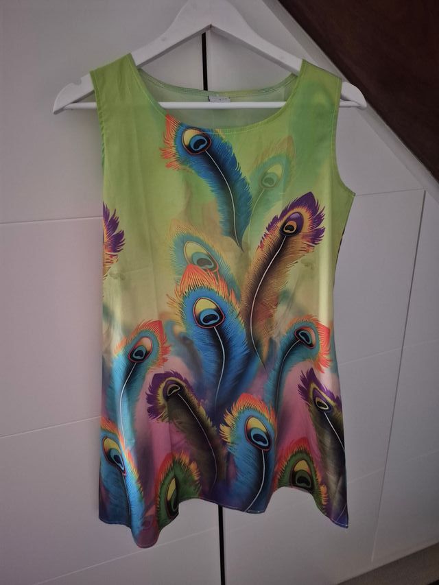 Vestido corto estampado plumas