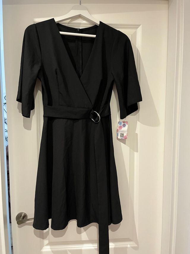Vestido corto negro con cinturón