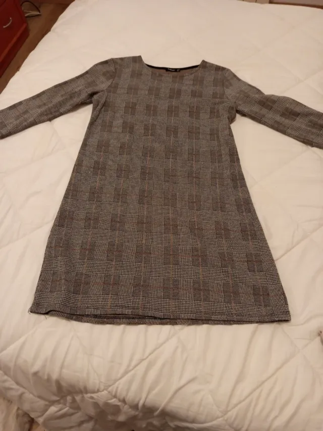 Vestido de cuadros gris y marron