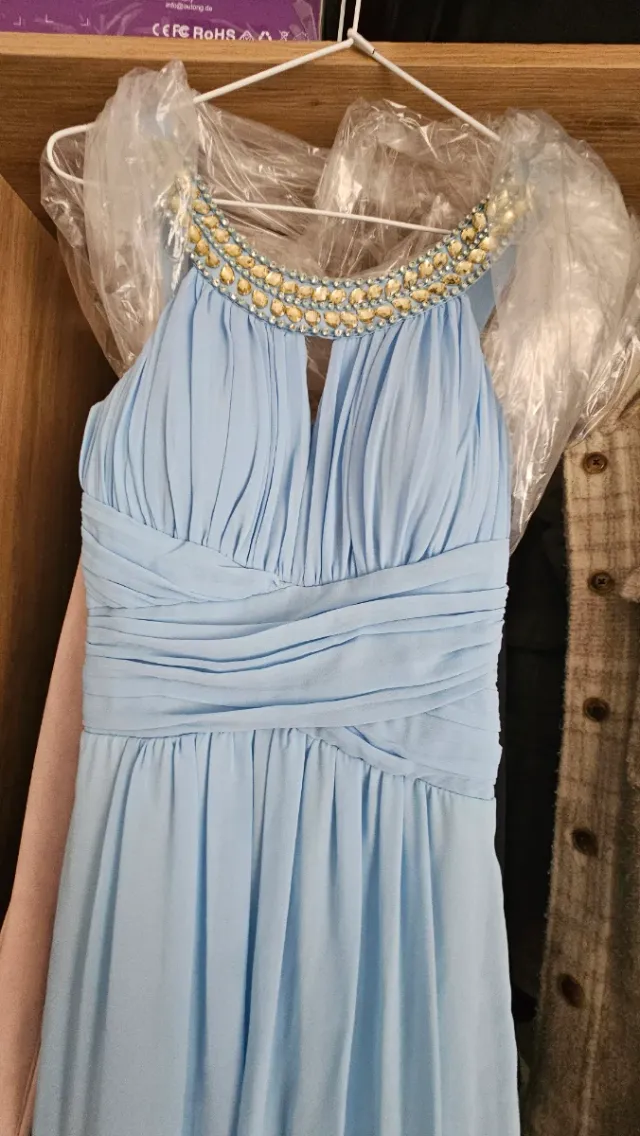 Vestido de fiesta azul con pedrería
