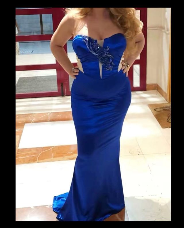 Vestido de fiesta azul estilo gitana