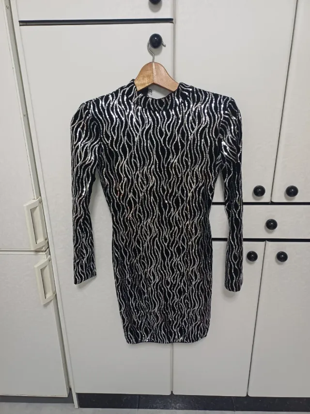 Como nuevo · S / 36 / 8 · Bershka · Negro y Plateado