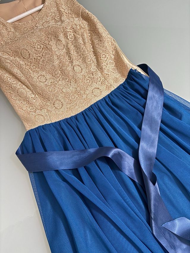 Vestido de fiesta dorado y azul