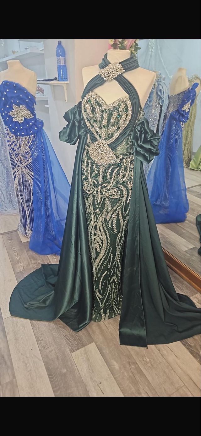 Vestido de fiesta espectacular verde y dorado