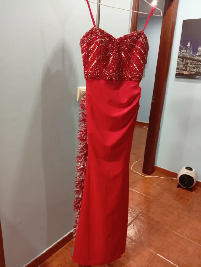 Vestido de fiesta largo rojo con pedrería dos mono