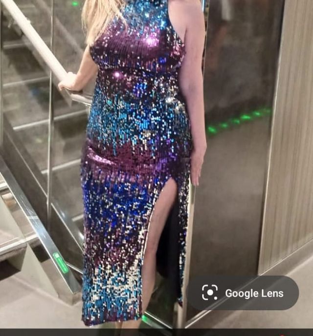 Vestido de fiesta lentejuelas azul y morado