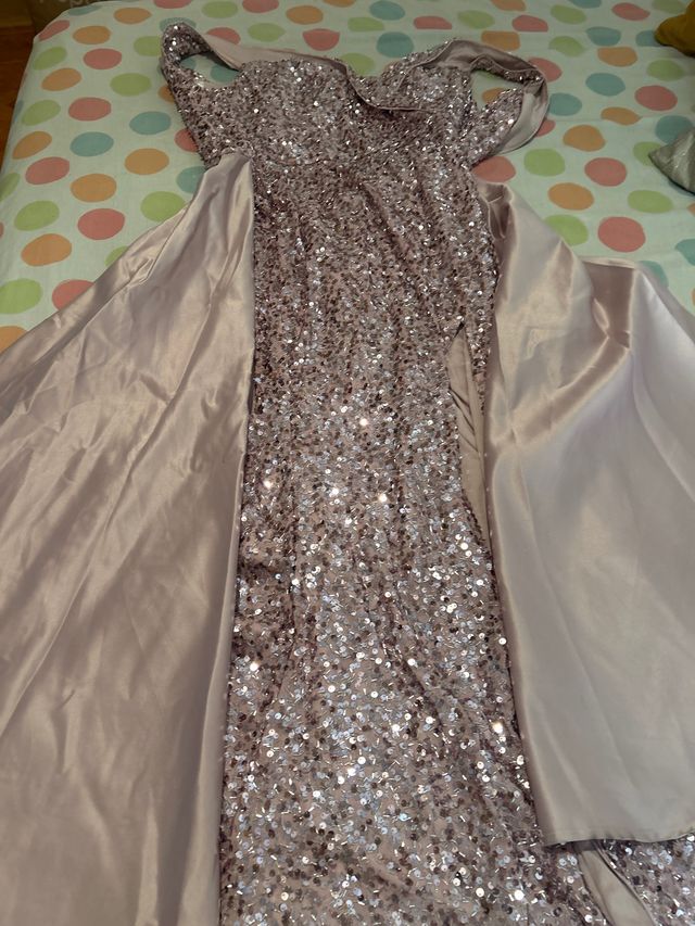 Vestido de fiesta lentejuelas rosa y plata y dorad