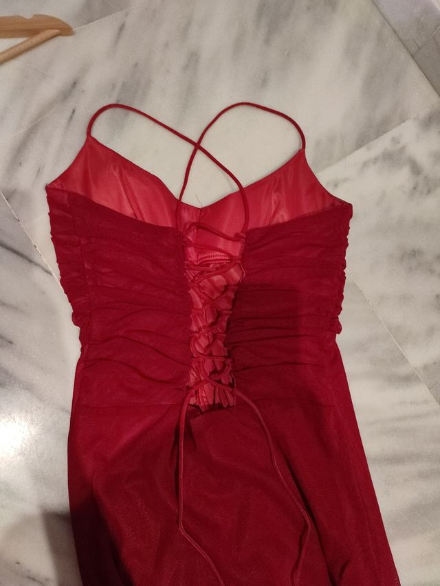 Vestido de fiesta rojo con cordones a la espalda.
