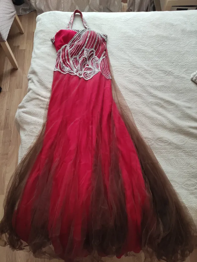 Vestido de fiesta rojo y marrón