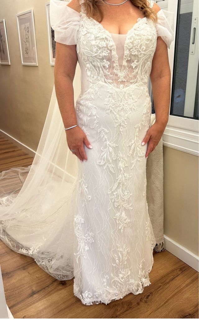 Vestido de Novia Blanco Encaje Tul con velo largo