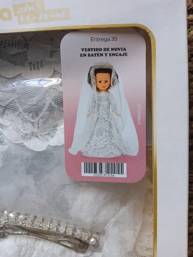 Detalles del productoVestido de novia para muñeca Nancy, inspirado en los modelos de los años 60, 70 y 80. Un clásico para tu colección.