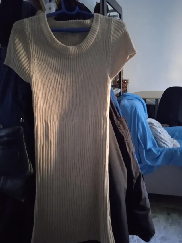 Vestido de punto beige corto