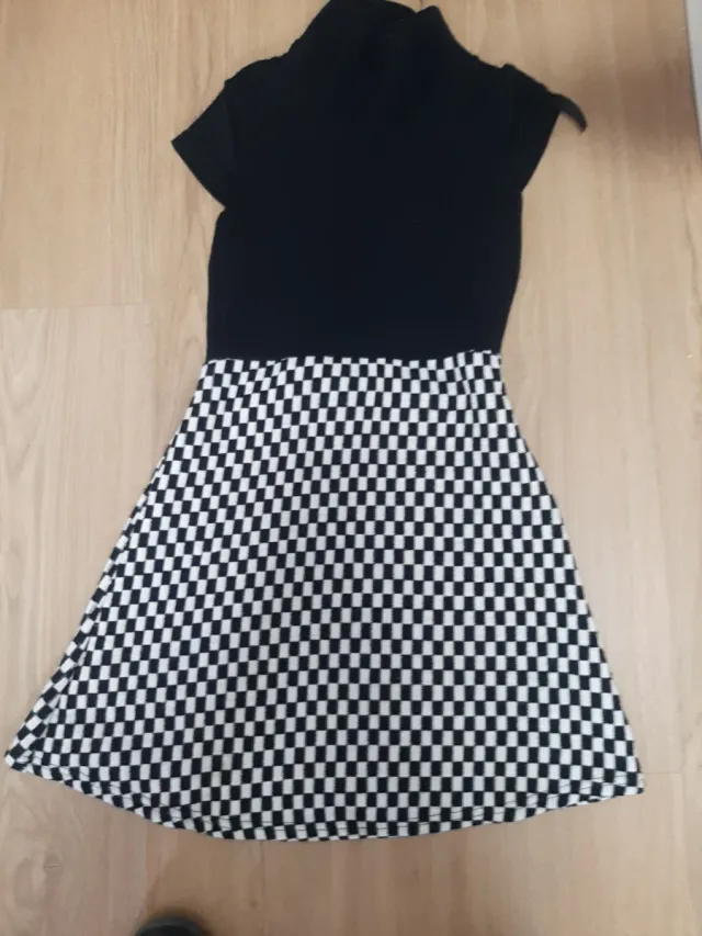 Vestido de punto M cuadros blanco y negro