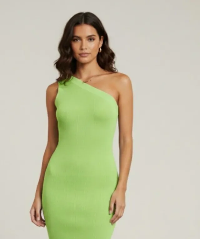 Vestido de punto verde acanalado