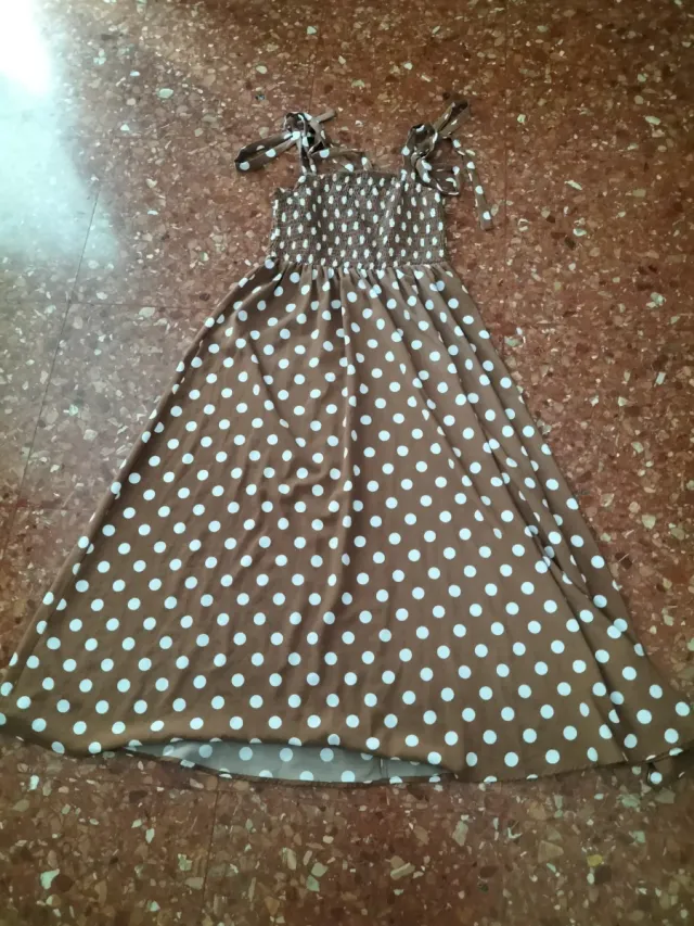 Vestido de tirante largo Zara M lunares marrones