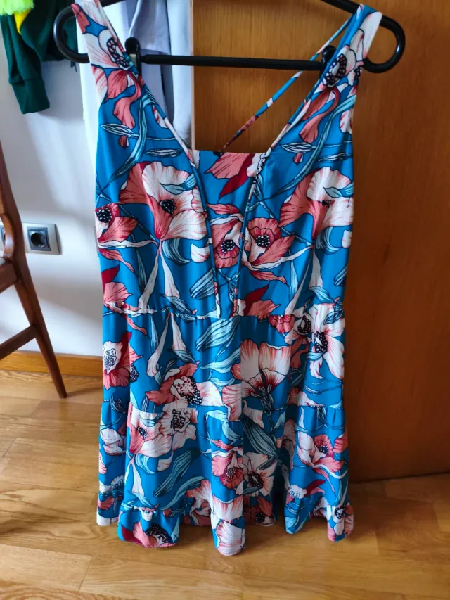 Vestido de verano floral azul y rosa