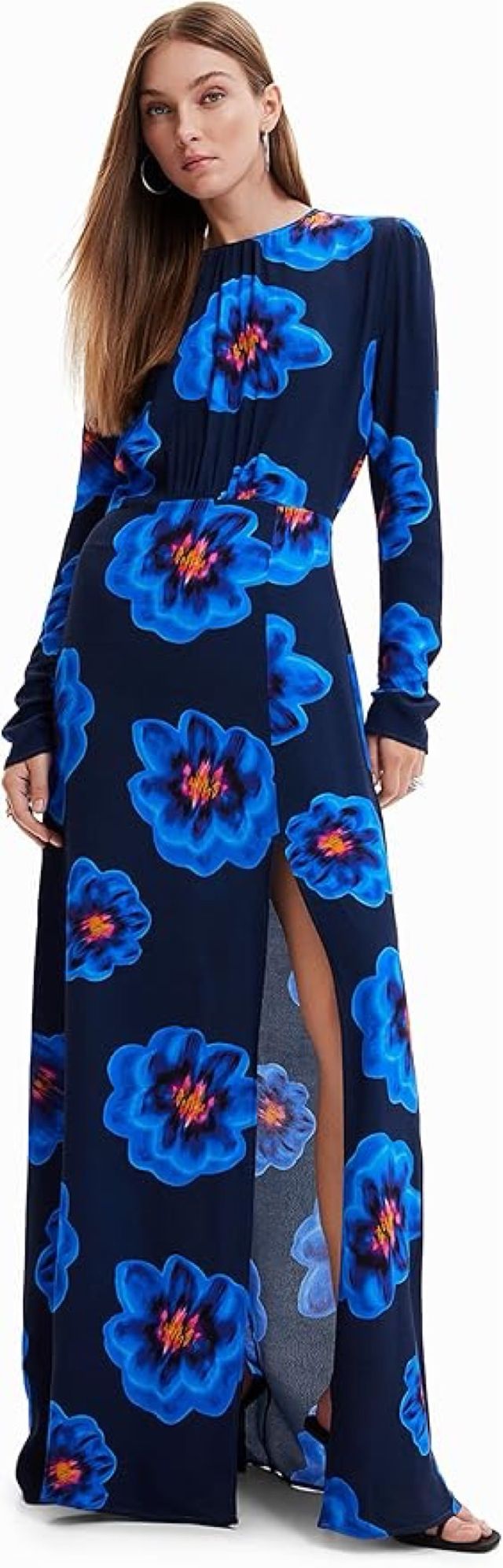 Vestido Desigual Azul Estampado Flores (1 uso)