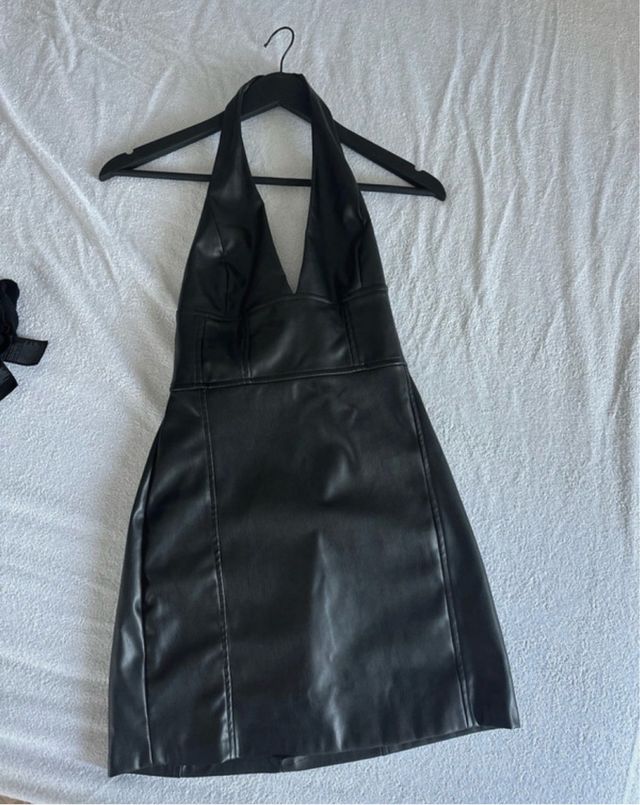 Vestido efecto cuero negro