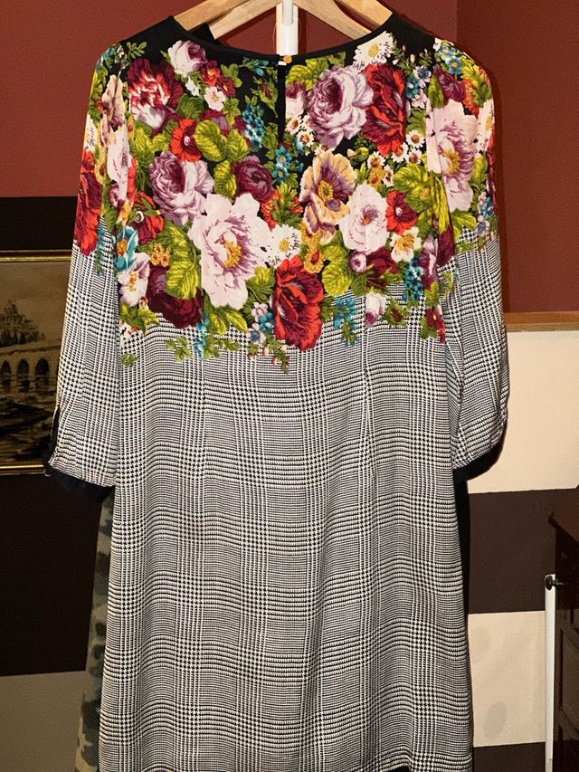 Vestido estampado floral y cuadros media manga.