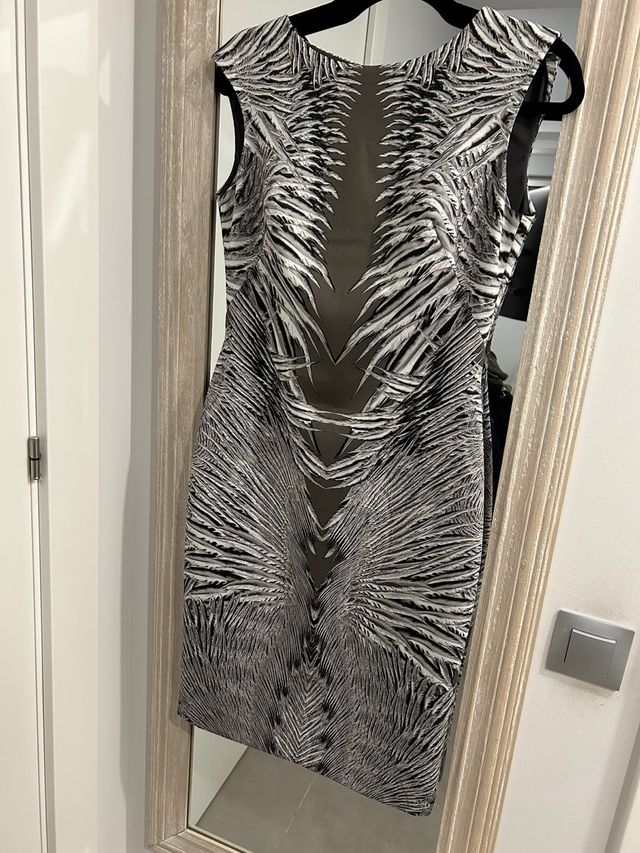 Vestido estampado plumas espalda abierta