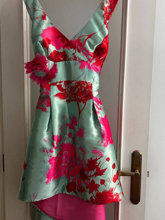 Vestido fiesta/ceremonia verde y rosa T.XL