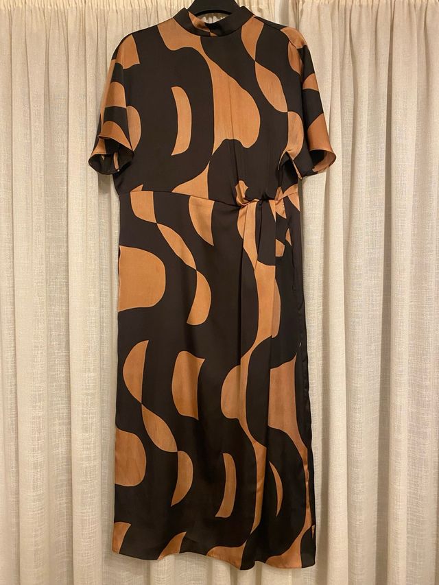 Vestido fiesta estampado marrón y negro