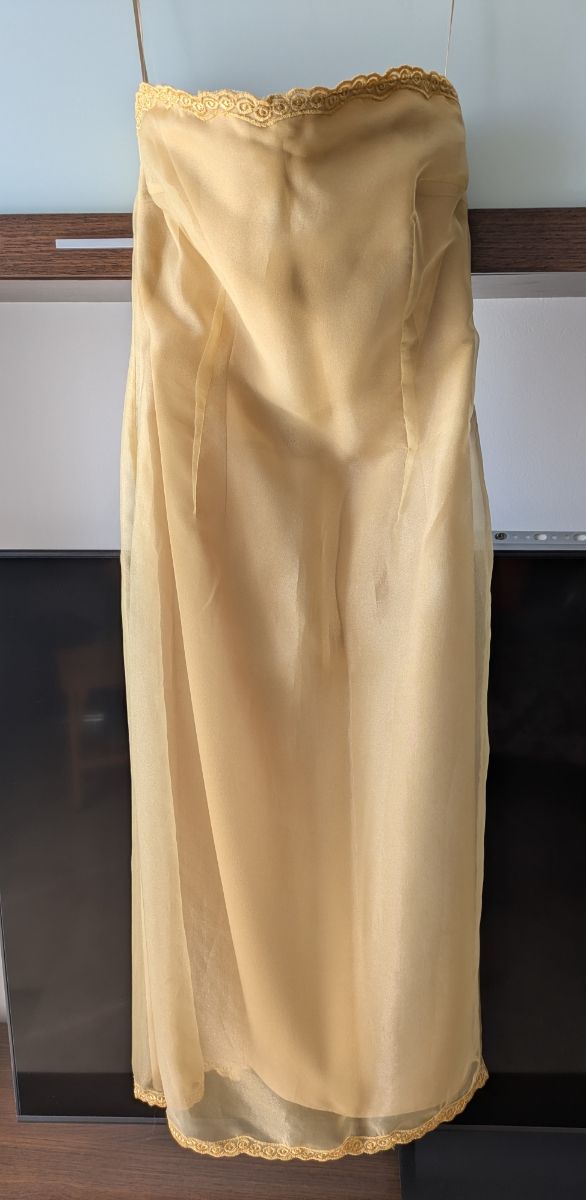 Vestido fiesta largo dorado palabra de honor