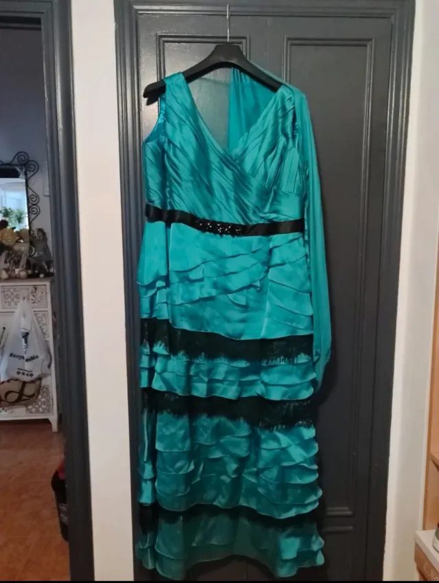 Vestido fiesta largo verde con negro
