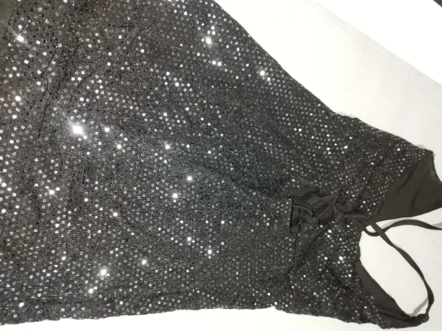 Vestido fiesta lentejuelas negro y plata