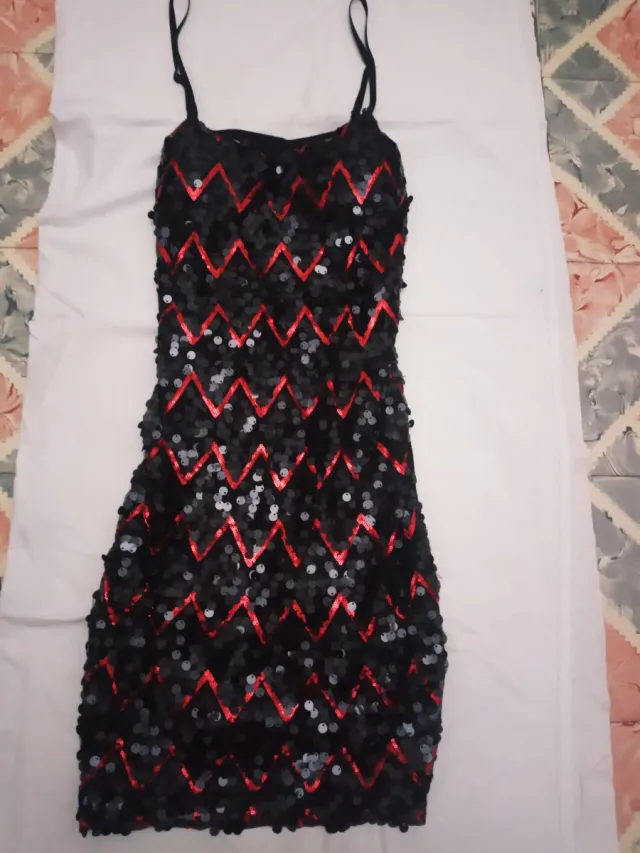 Vestido fiesta lentejuelas negro y rojo
