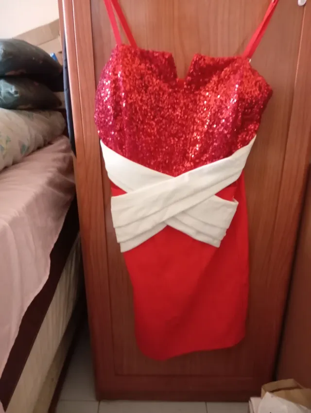 Vestido fiesta lentejuelas rojo y blanco Talla S