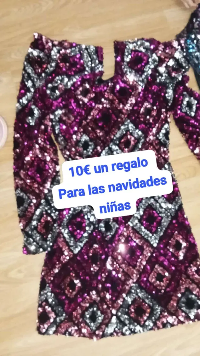 Vestido fiesta lentejuelas rosa y plata 38.40