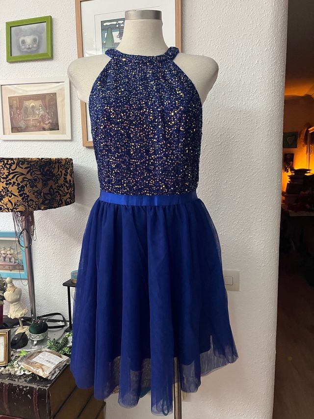 Vestido fiesta lentejuelas tul azul XL