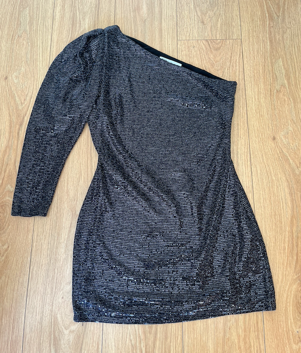 Vestido fiesta lentejuelas Zara negro asimétrico