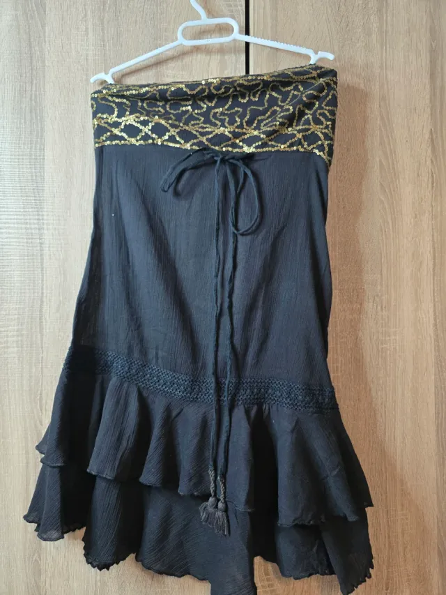 Vestido fiesta negro con detalles dorados