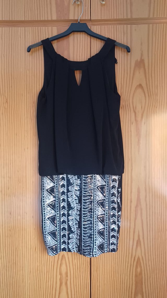Vestido fiesta negro lentejuelas T.38/M