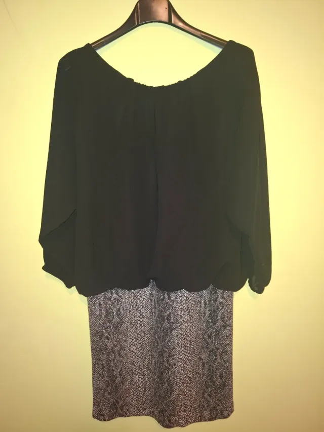 Vestido fiesta negro y gris, de gasa y licra. T. M