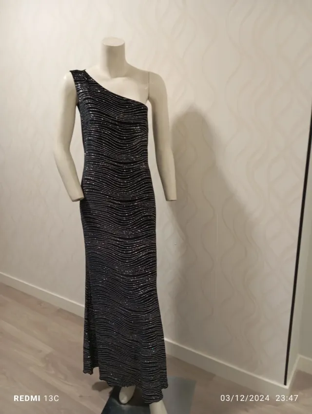 Vestido fiesta noche negro y plata