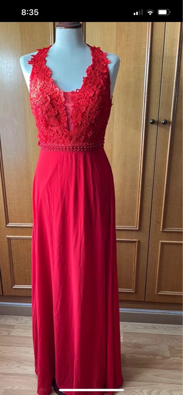 Vestido fiesta rojo encaje espalda al aire
