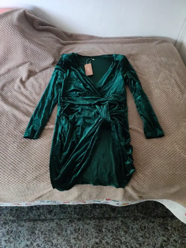 Vestido fiesta Shein verde terciopelo 2 XL