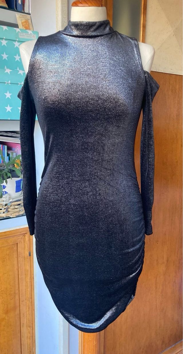 Vestido fiesta terciopelo negro/plata