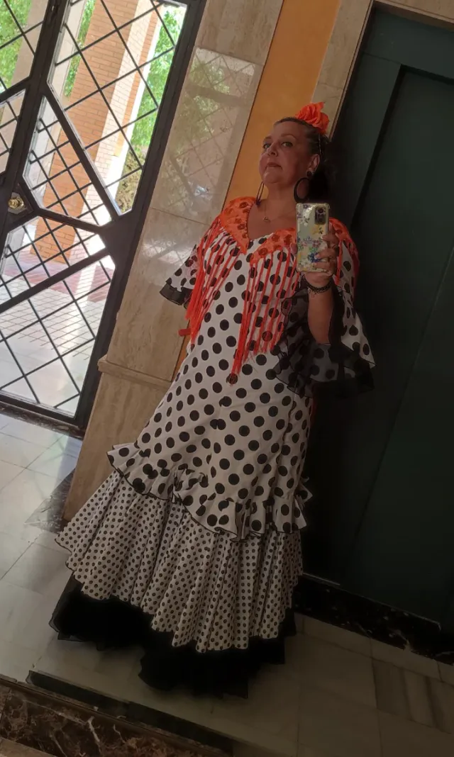 Vestido Flamenca Lunares Negros y fondo Blanco