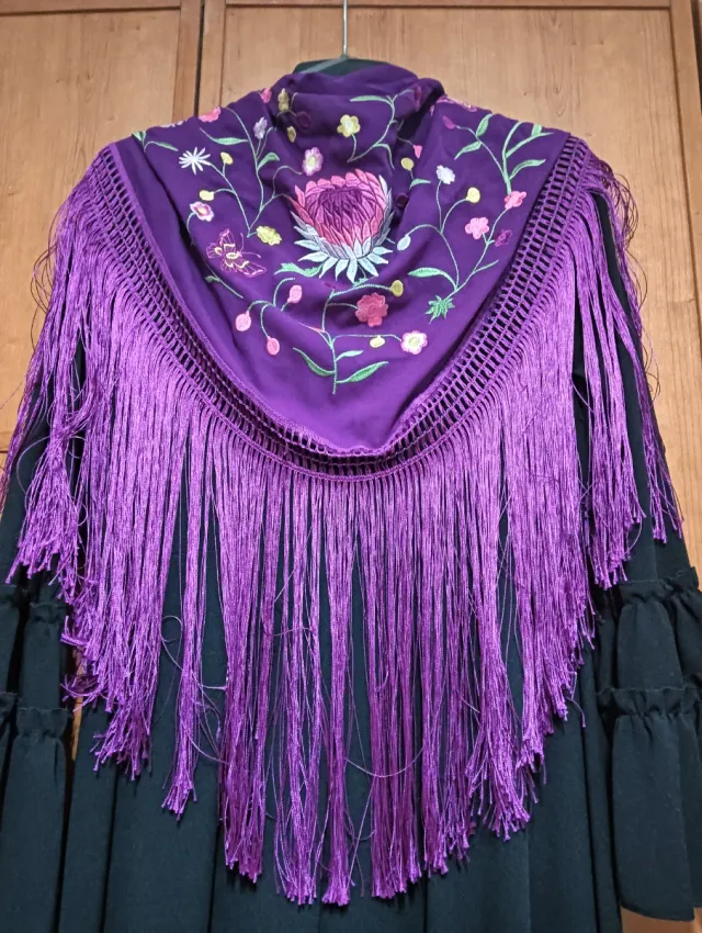 Vestido Flamenca Negro con Mantoncillo Morado