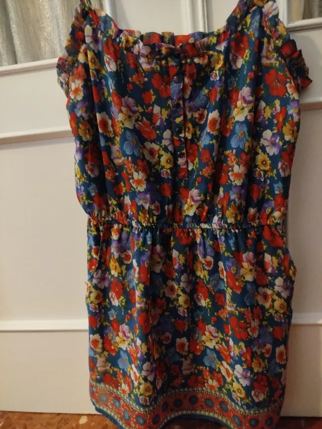 Vestido floral azul y multicolor