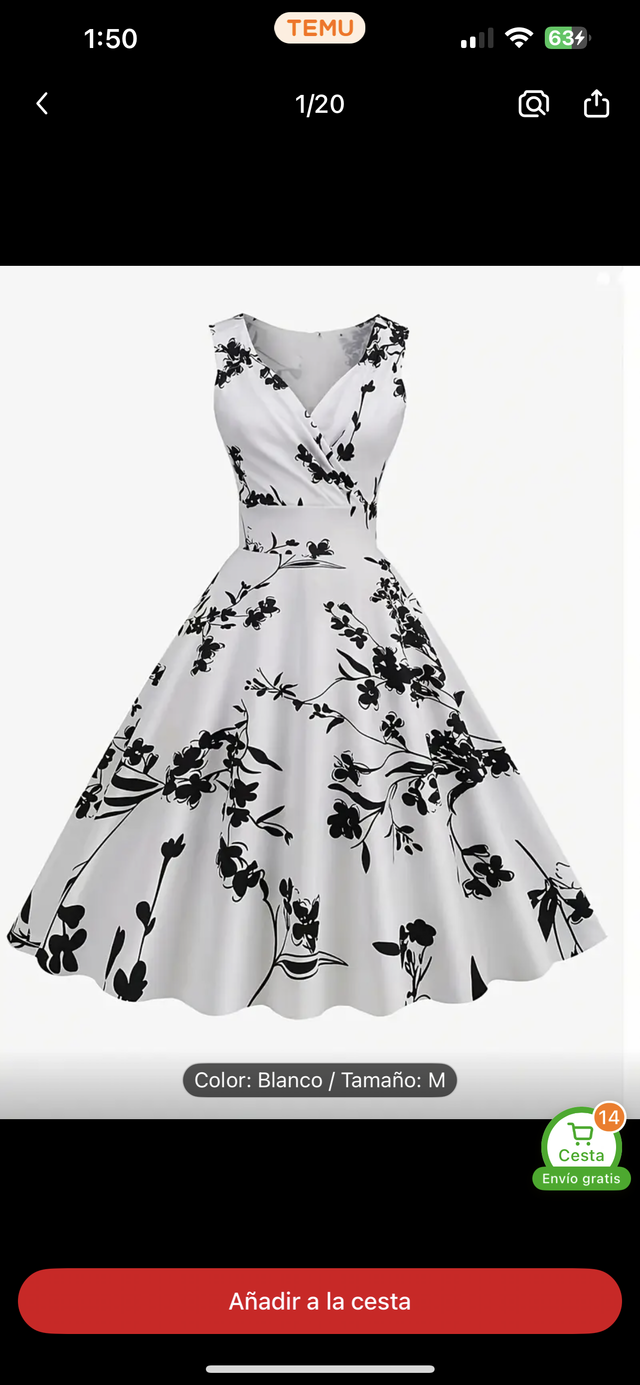 Vestido floral blanco y negro Talla M