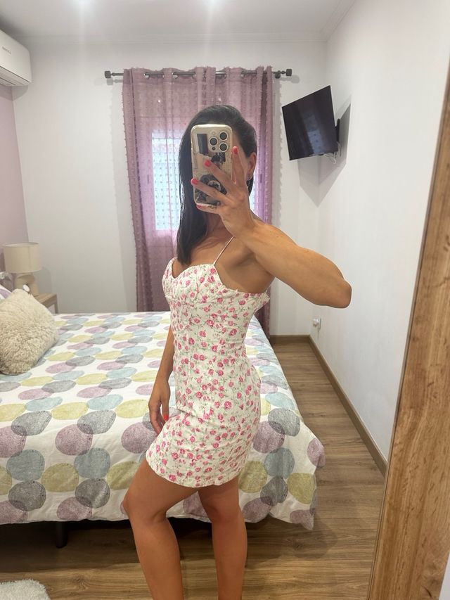 Vestido flores rosa blanco ZARA