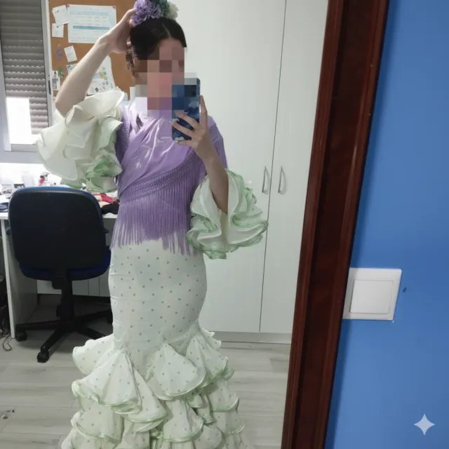 Vestido Gitana Blanco Topos Verdes