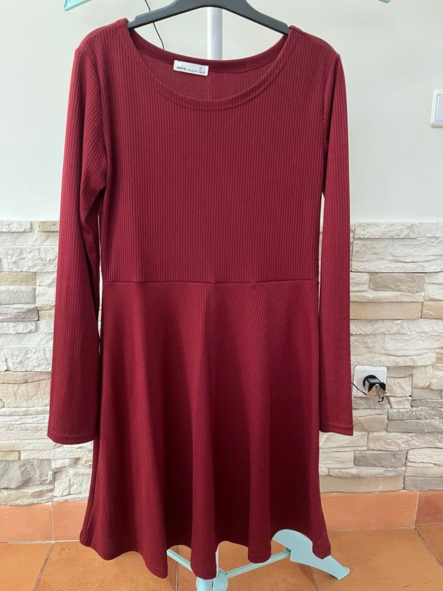 Vestido granate manga larga canalé