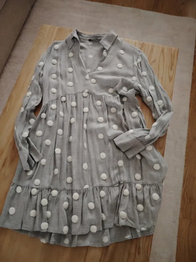 Vestido gris con motas blancas
