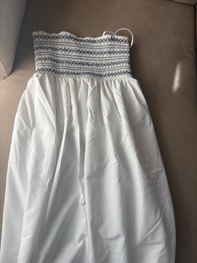 Vestido largo blanco con detalle de smock en el corpiño.
